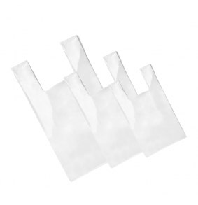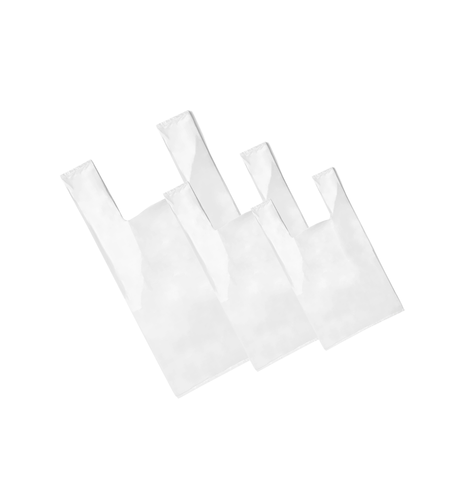 Bolsas de plástico con asa camiseta en color blanco fabricadas con un 70% de material reciclado, según indica la normativa vigente. Perfectas para portar productos de cualquier tipo. Medida 30/19x40. Paquetes de 1 kg. Cantidad mínima 10 paquetes. Esta bolsa no tiene la obligación de ser cobrada en los establecimientos. Precio por paquete